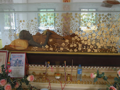 Portan Kling was a famous guru monk in Nakhon Si Thammarat known for making Phra Pikanet and also Jatukam amulets. He passed away not long ago and his body can be viewed at Wat Thaluntong. Above we see the temple gate.This Blog discusses the truth of the Buddha's teachings to be found in everyday life here in Singapore and anywhere else. The practice of the Dhamma is not something far away, but begins right here. To learn more abt Buddhism, visit my online temple at http://www.lianhuayuan.net/ To see my collection of Thai and Chinese Buddhist amulets and images go to http://buddhoamuletshop.blogspot.com/